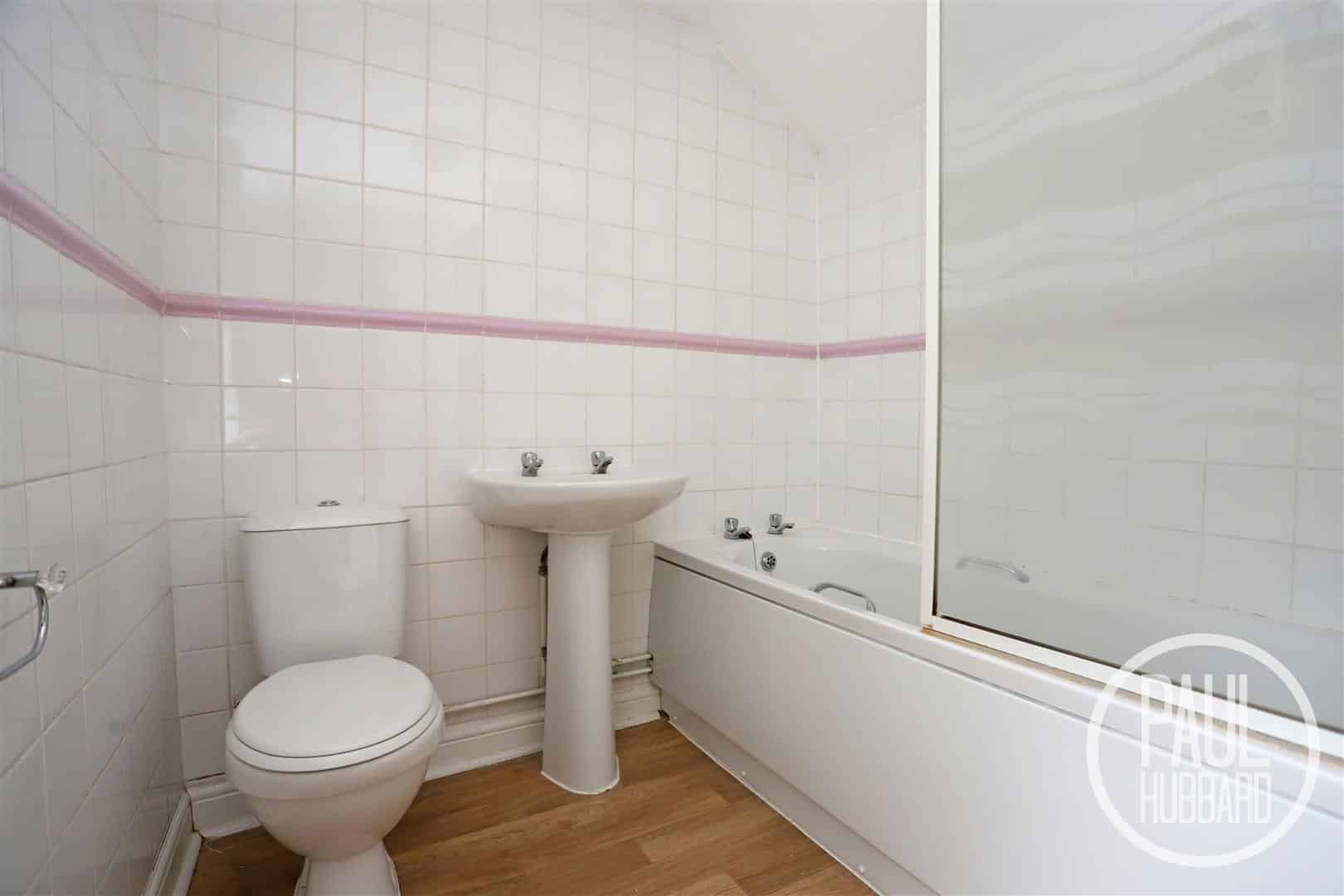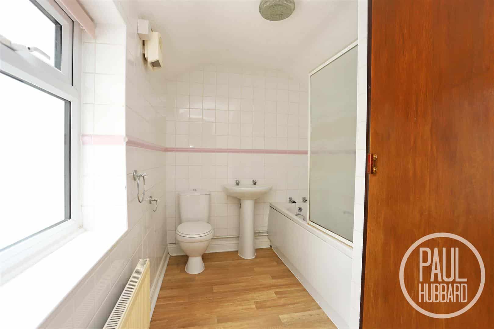 Steps down lead to the bathroom, which comprises; Vinyl flooring, tiled walls, UPVC double glazed obscure window to the side aspect, radiator, storage cupboard (housing the gas boiler), a toilet, pedestal wash basin with hot & cold taps, a panelled bath with hot & cold taps and an electric shower above.