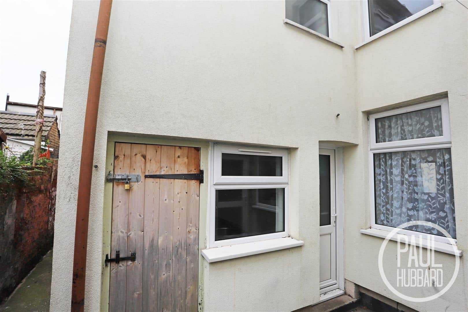 Towards the rear, there is a small courtyard with access to the front via a communal alleyway. Additionally, there is an outhouse available for storage purposes.