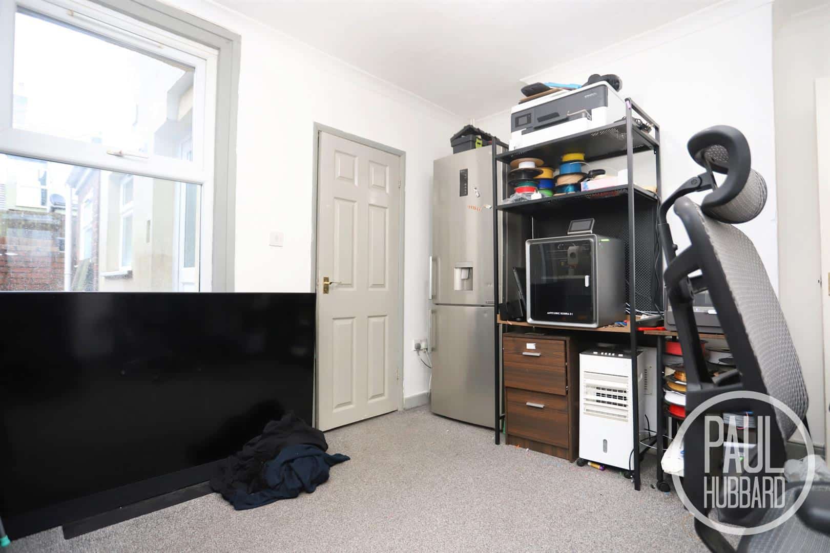 Fitted carpet, UPVC double glazed window to the rear aspect, under-stair storage cupboard, radiator and a door open into the kitchen.