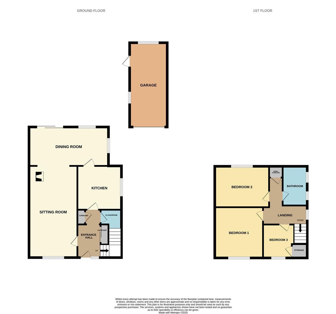 A detached, brick-built garage complete with dual-aspect double-glazed windows, light and power. It offers flexible use for parking or storage, and includes an up-and-over door to the front and a pedestrian access door from the rear garden.