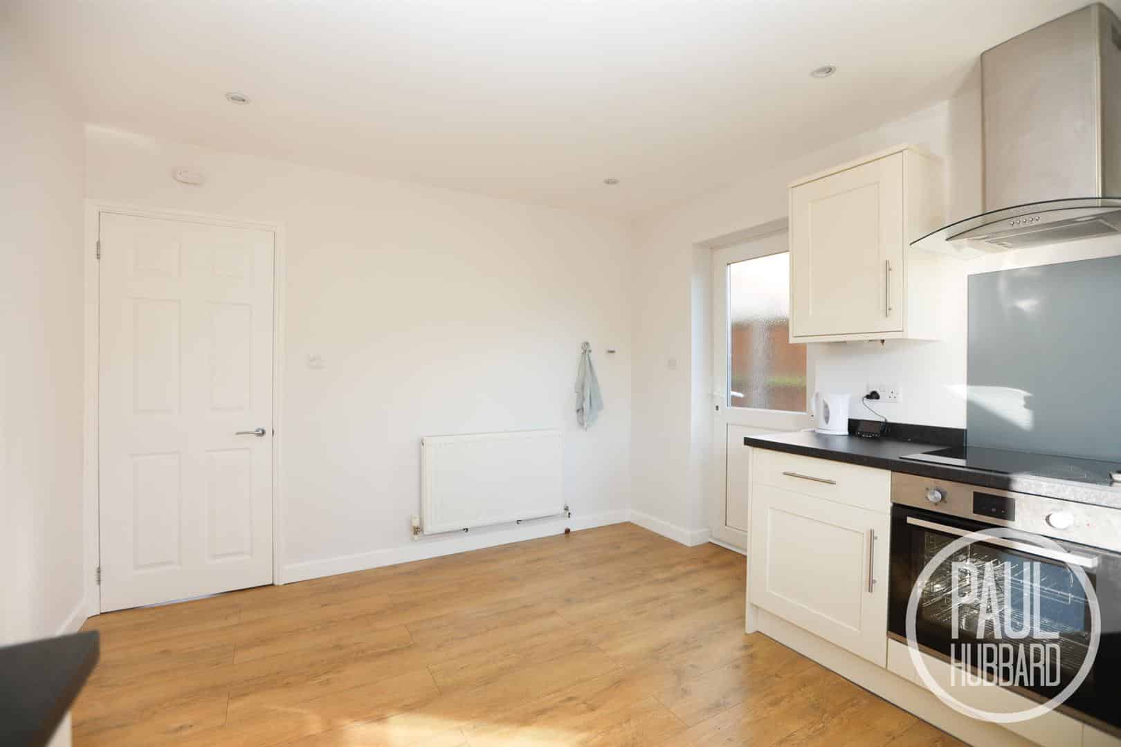 X2 UPVC double glazed windows to the front aspect, laminate flooring throughout, a radiator, units above and below, stainless steel sink with drainer, integrated oven, hob, extractor fan, space for a washing machine and a door opening to the rear garden.