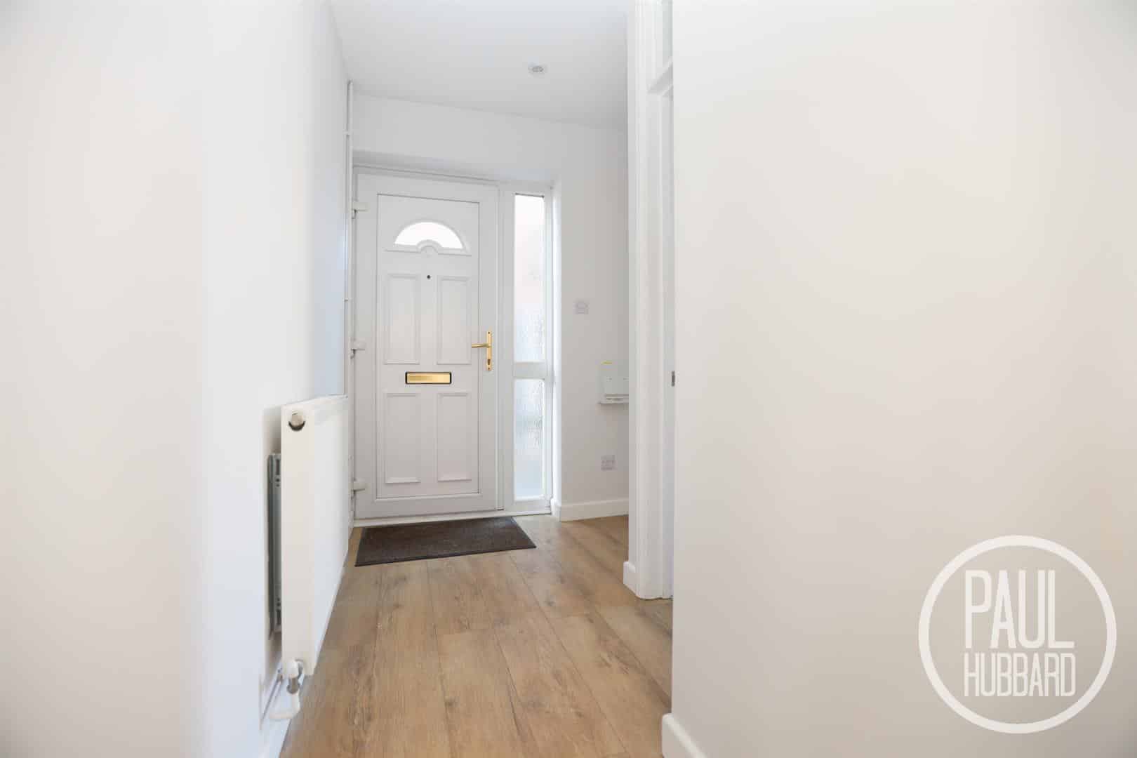 Entrance door to the side aspect, laminate flooring throughout, a radiator, loft hatch and doors opening to the sitting room, kitchen, bathroom and bedrooms 1-3.