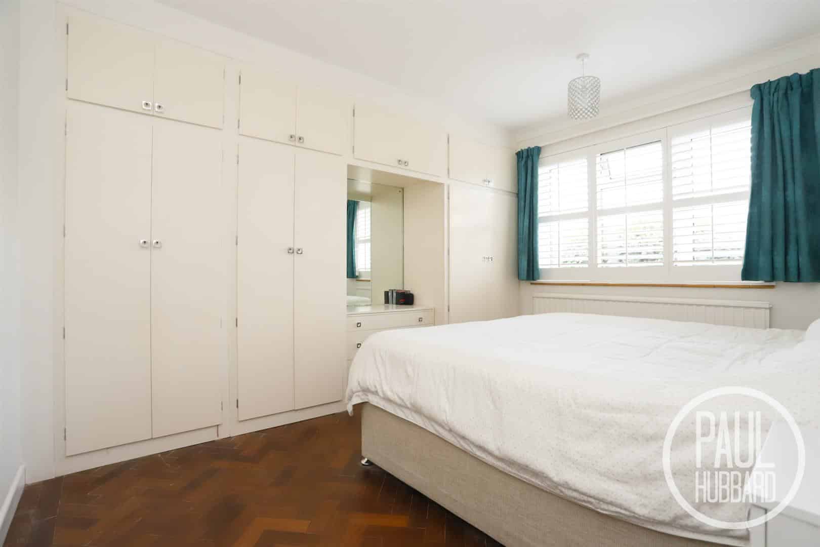 Parquet flooring throughout, a radiator and doors opening to the sitting room, kitchen/diner, bathroom, X2 storage cupboards and bedrooms 1-2.