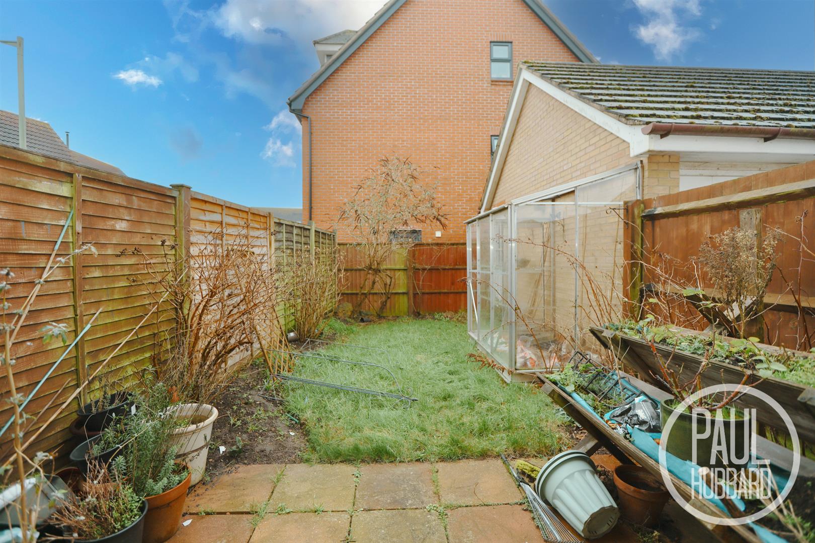 To the rear a fully enclosed, south facing laid lawn garden with patio seating area and greenhouse.