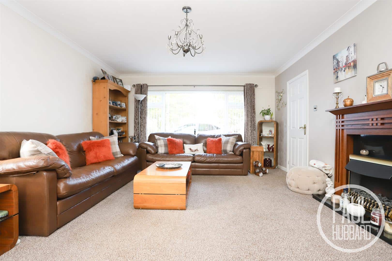 UPVC double glazed windows to the front and side aspects, carpet flooring throughout, an electric fireplace, X2 radiators and French doors opening to the dining room.