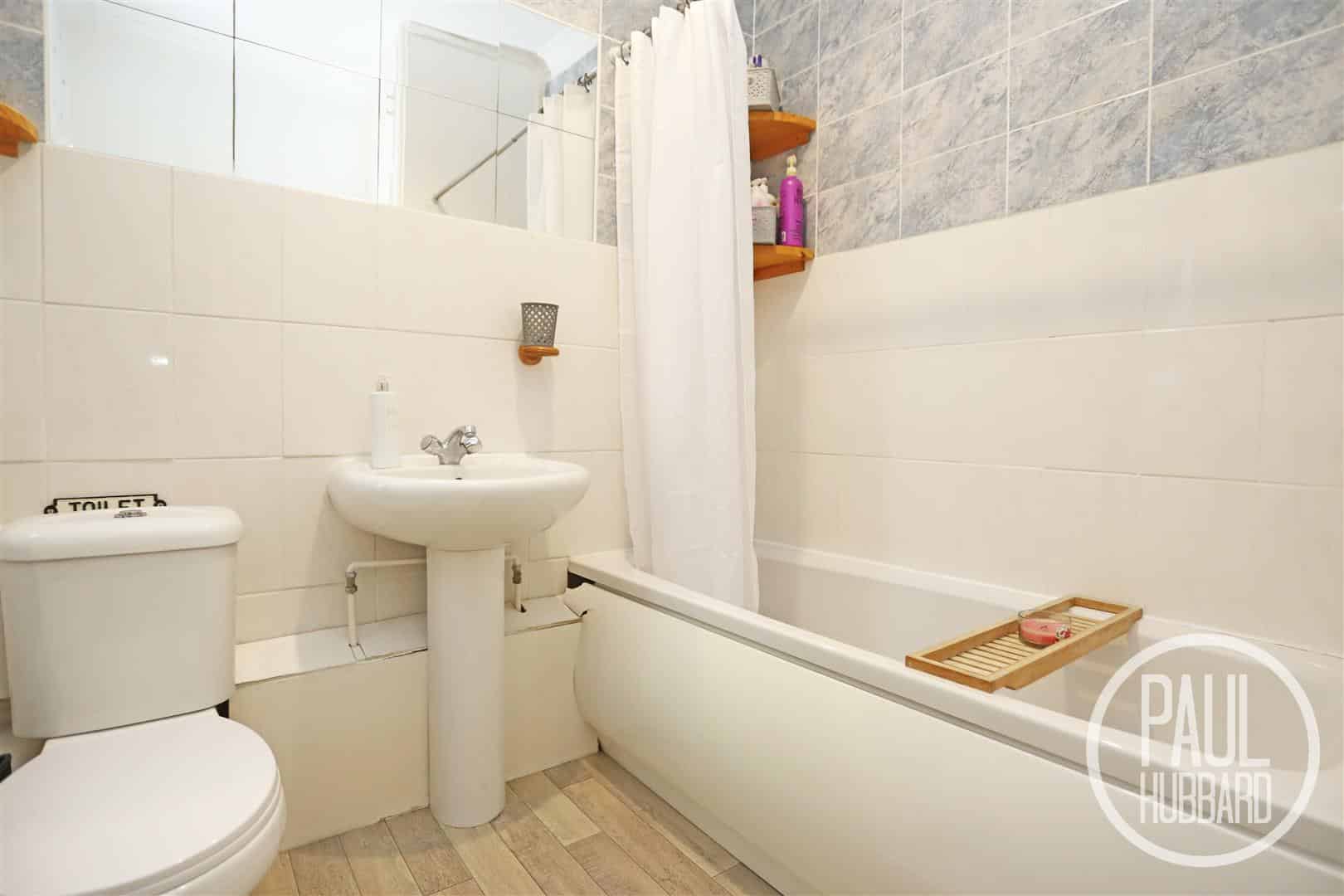 Vinyl flooring, UPVC double glazed obscure window to the side aspect, radiator, part tiled walls, suite comprises of a toilet, pedestal wash basin with a mixer tap, a panelled bath with a mixer tap & a hand held shower attachment and a door opens into the airing cupboard which houses the hot water tank & a modern electric boiler.