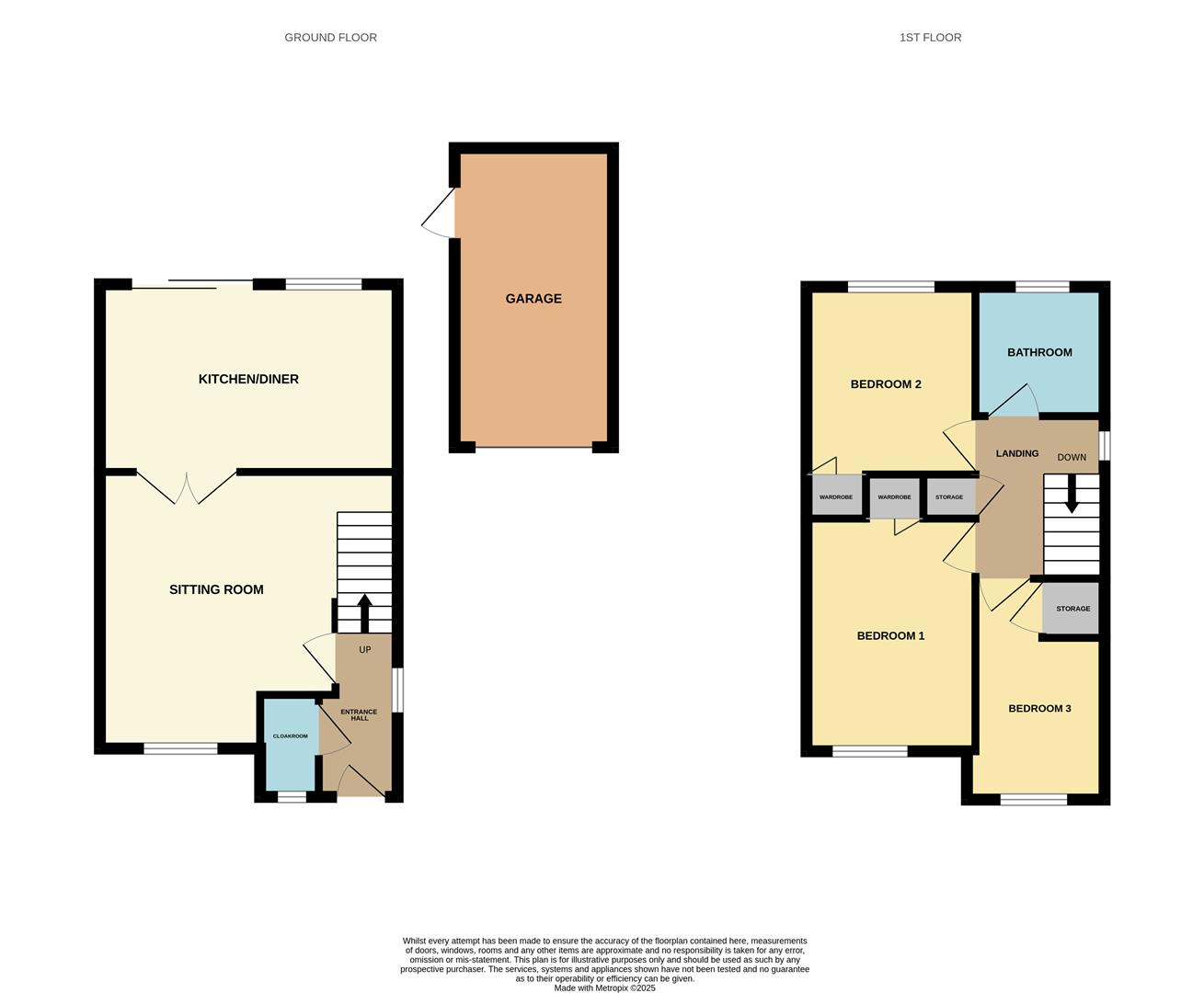 Attached to the property, the brick-built garage features a roller shutter door to the front, power and lighting and a side door provides convenient access to the garden.