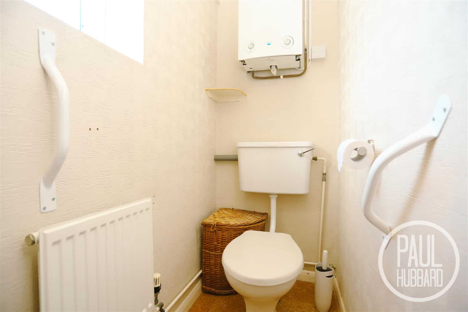 Laminate tile flooring, UPVC double glazed obscure window to the rear aspect, radiator, gas boiler and a toilet.
