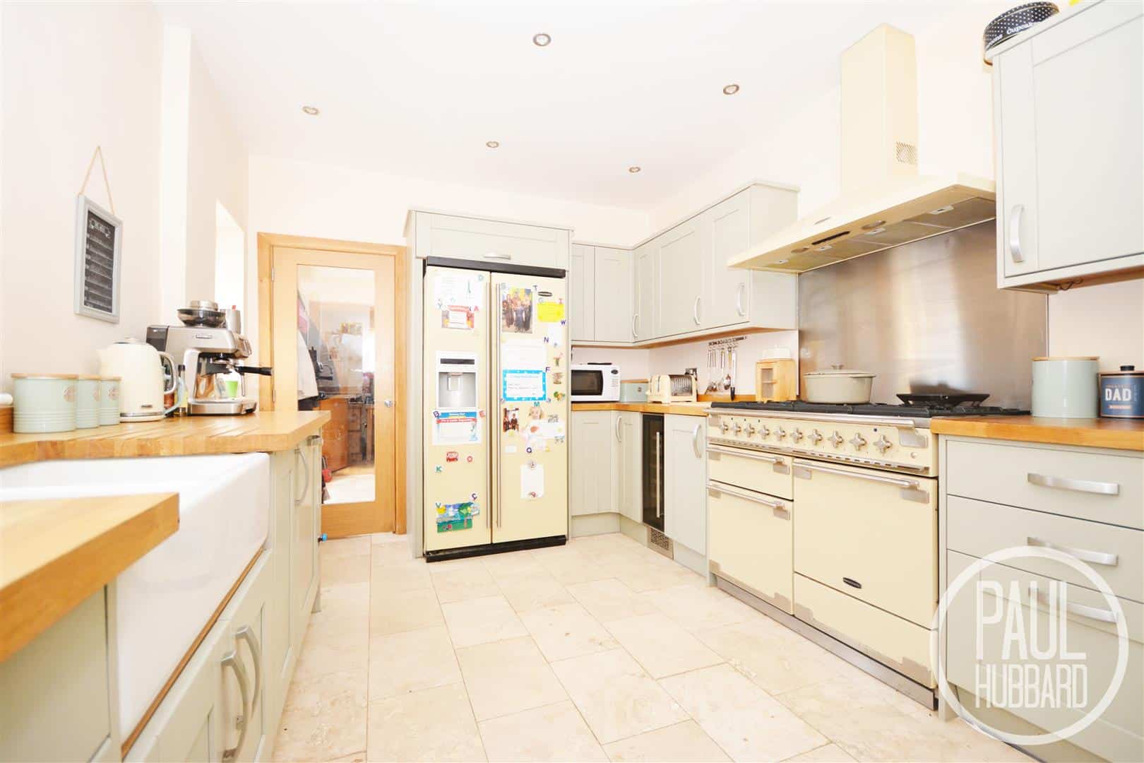 x2 UPVC double glazed windows to side aspect, tile flooring, radiator, underfloor heating, units above and below, cupboard opening to gas boiler, oak work surfaces, double inset ceramic sink, extractor fan, double electric oven with 6 ring gas hob, space for double fridge/freezer, integrated dishwasher and wine cooler, door opening to rear hall.