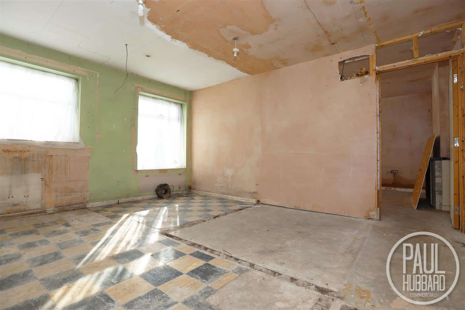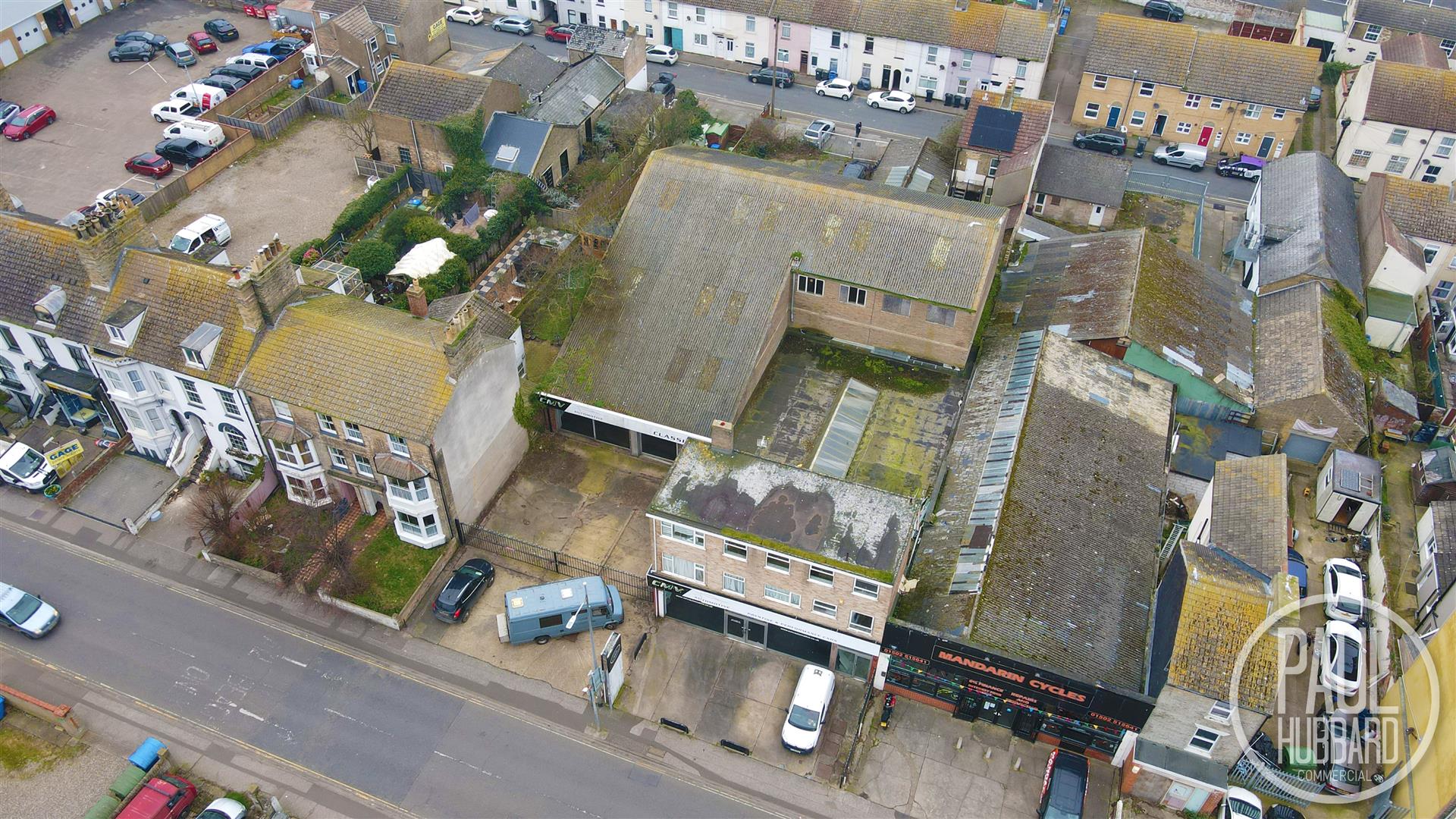 The property consists of a former car showroom with a large workshop area, multiple offices and ancillary accommodation at ground floor level, together with two self-contained residential flats above. The flats are currently vacant and require full refurbishment, presenting an opportunity for improvement and potential value uplift.