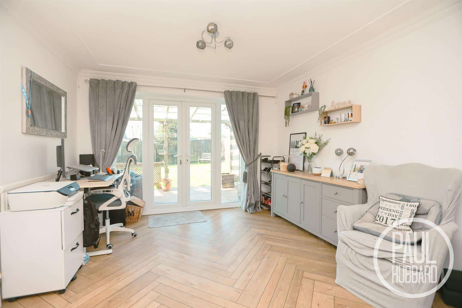 A sizeable reception room with UPVC double glazed windows to the front and rear aspects with french doors opening onto the patio, LVT flooring throughout, a gas fire, x2 radiators.