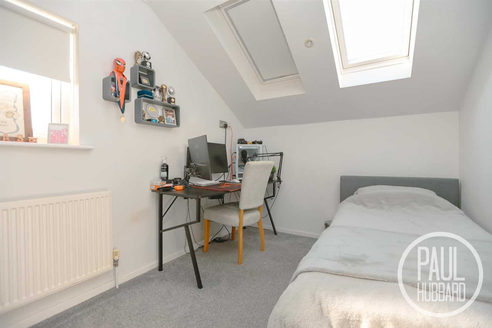 UPVC double glazed window to the side aspect, x2 Velux windows to the rear, carpet flooring throughout and a radiator.