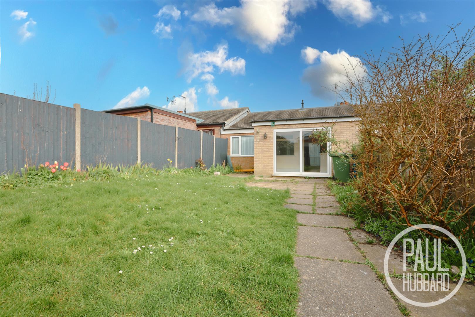 To the front of the property, a fully enclosed laid lawn garden with a selection of plants and shrubs and concrete pathway which leads up to the entrance porch.