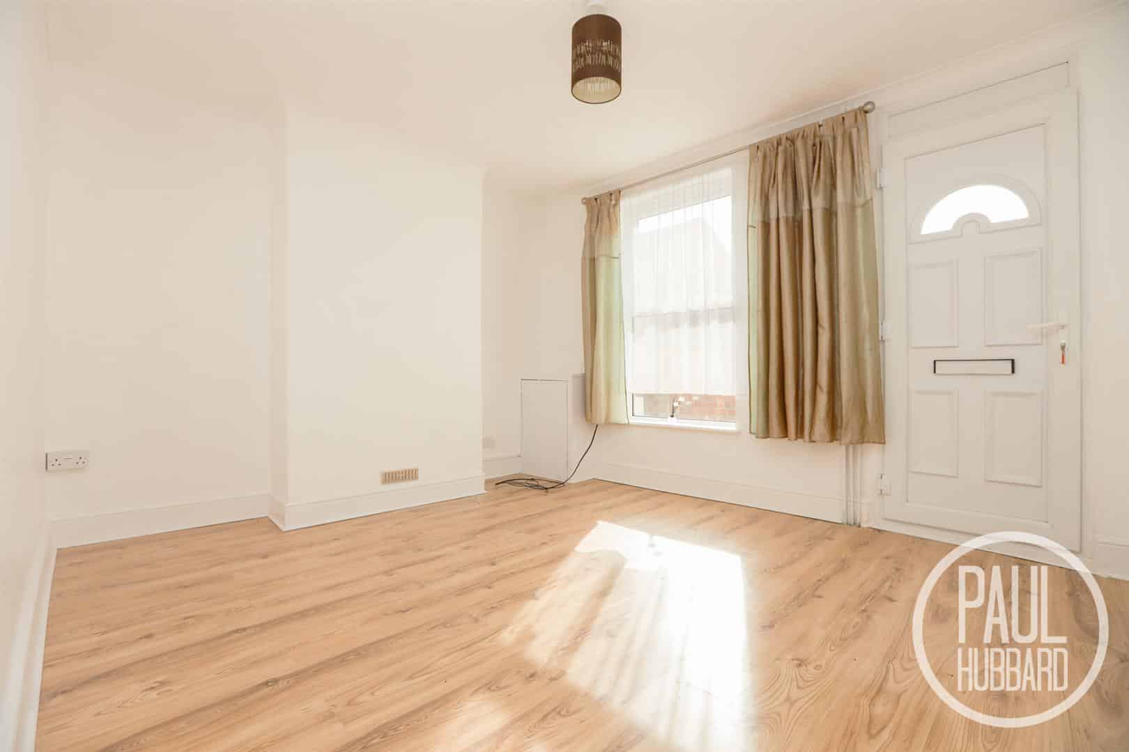 UPVC double glazed window and entrance door to the front aspect, wood effect laminate flooring throughout, a radiator and an opening which leads to stairs to the first floor landing and door opening to the dining room.