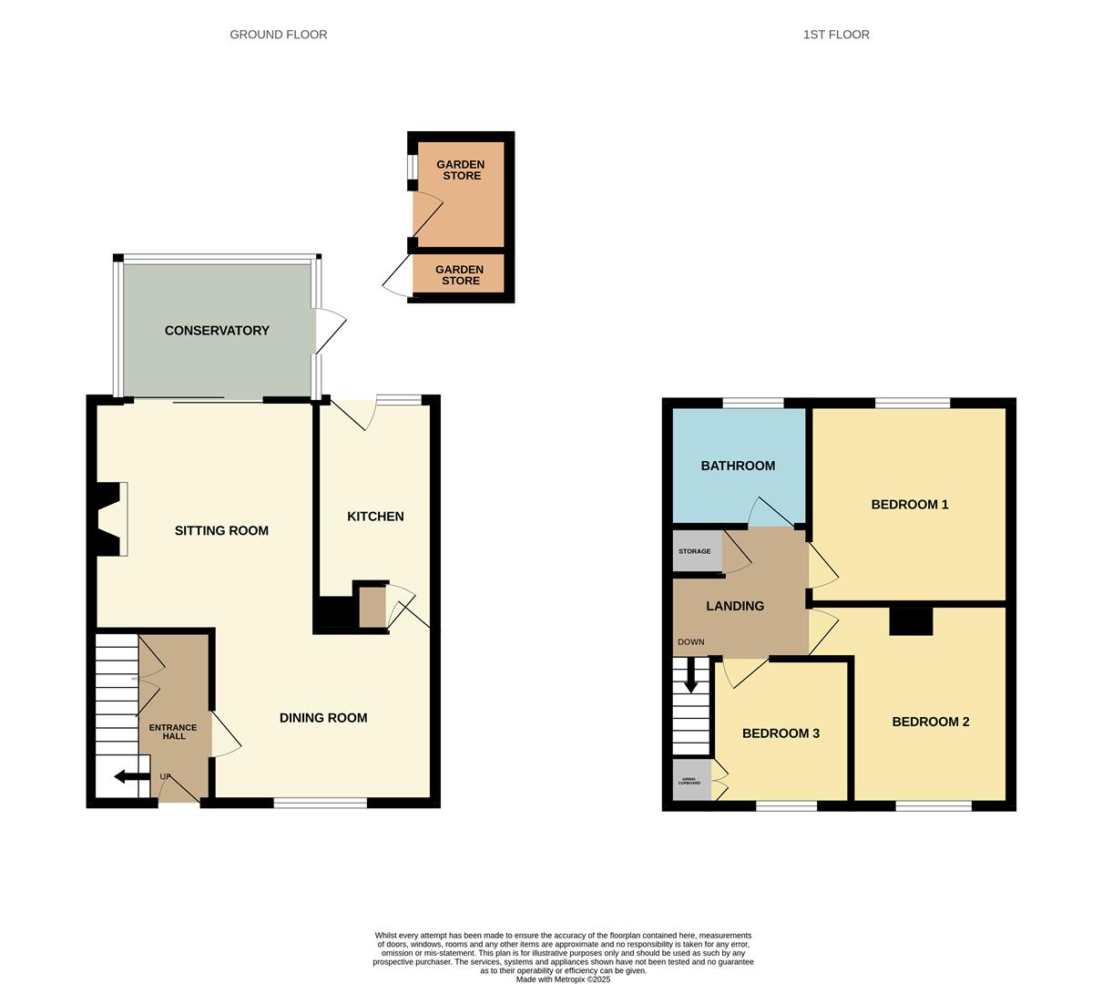 The brick-built garden stores provide excellent additional storage, each fitted with power, lighting, their own consumer unit, shelving, and ample space for equipment or appliances.