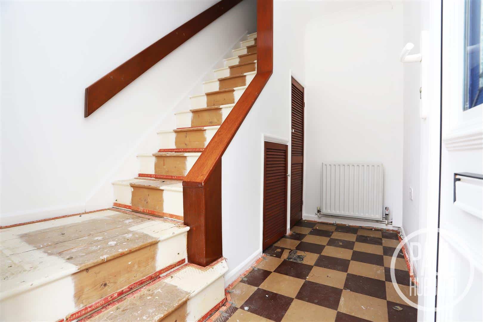 UPVC entrance door to the front aspect, radiator, under-stair storage, stairs leading to the first floor landing and a door opening to the dining room.