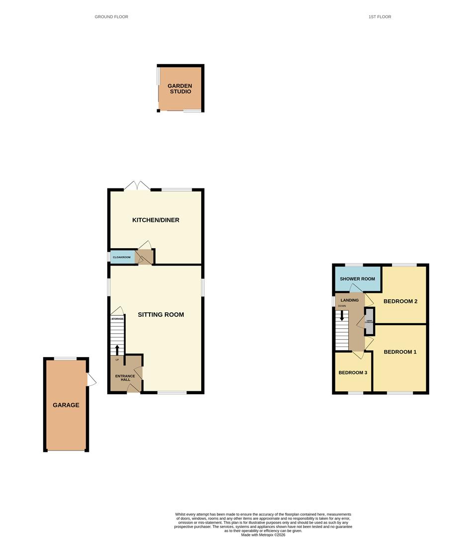 This well-presented detached family home offers three separate bedrooms and bright, spacious accommodation throughout. The property benefits from brand new windows and doors within the last two years and a fully serviced Baxi gas combi boiler. Features include a modern kitchen/diner with integrated appliances and French doors to the garden, a ground floor cloakroom, and a contemporary first floor shower room. Outside, there is off-road parking for multiple vehicles, a garage with EV charging point, and a low-maintenance rear garden with patio, decking, and a garden studio ideal for home working or entertaining. Tucked away in a sought-after cul-de-sac and conveniently located close to local amenities, shops, and schools.