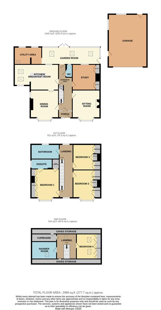 Carpet flooring throughout, Velux window, radiator, hatch to eaves storage (which runs across the full length of the property), and doors opening to bedroom 4, a shower room and sizeable cupboard housing a water tank and hatch to the rear eaves.