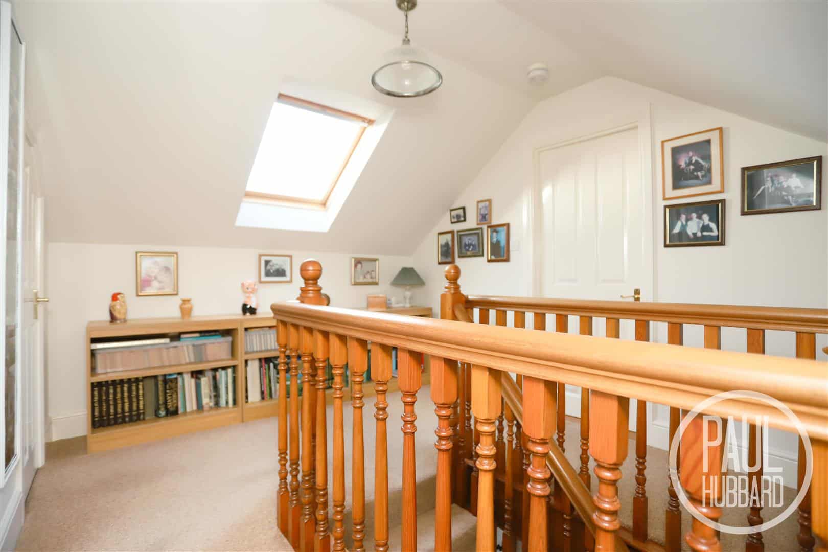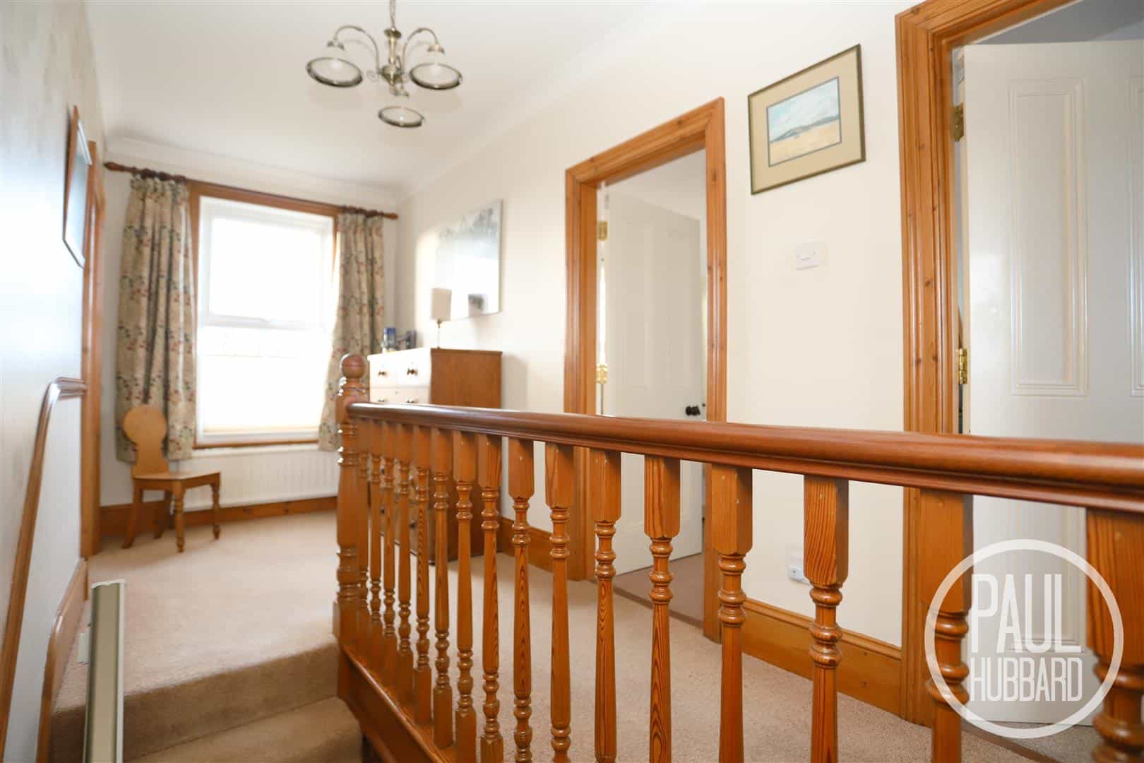 A spacious landing with carpet flooring throughout, x2 UPVC double glazed windows, feature dado rail, x2 radiators, stairs leading to the second floor landing and original Victorian doors opening to the family bathroom and bedrooms 1-3.