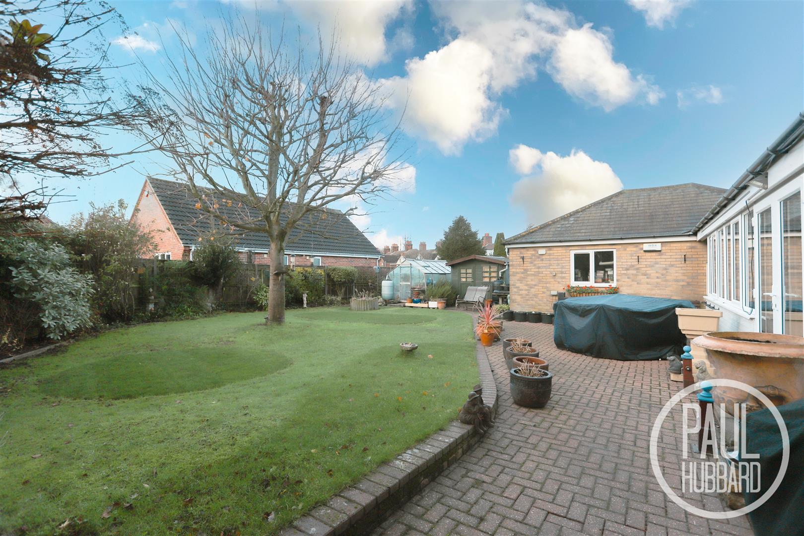 The south-west facing rear garden is a standout feature of the property, offering a beautifully landscaped space ideal for relaxation and outdoor living. A generous, well-kept lawn is surrounded by fully stocked borders and mature trees, creating both colour and privacy throughout the seasons. A brick weave patio provides an inviting spot for outdoor dining or seating, and the vendors will be leaving a high-quality detachable awning that provides welcome shade over the patio area during sunnier days. Practical additions include two pedestrian access doors to the garage, a timber storage shed, a greenhouse, outdoor lighting, power sockets and an outside tap. The entire garden is securely enclosed by panel fencing. To the side of the property, a discreet storage area provides convenient space for bins alongside a sheltered wood store, perfectly positioned for keeping logs dry and neatly organised.