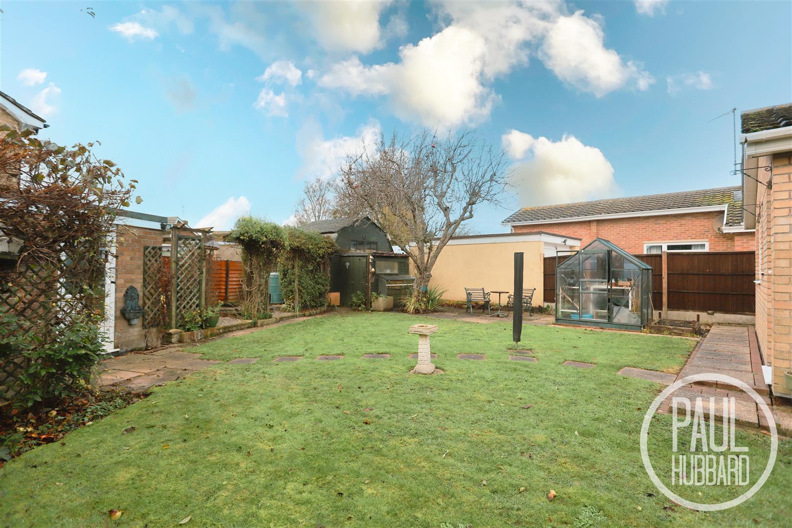 The property enjoys a beautifully maintained south-west facing wrap-around garden, featuring mature shrubs, planting beds and two established apple trees. A well-kept lawn is complemented by attractive borders, multiple patio areas, a shingle section with a timber pergola, dedicated planting beds and climbing plants. Additional benefits include several garden sheds, a greenhouse, a large workshop, and pedestrian access to the garage. Gated access leads to generous off-road parking at the rear, providing ample space for multiple vehicles and direct access to the garage.