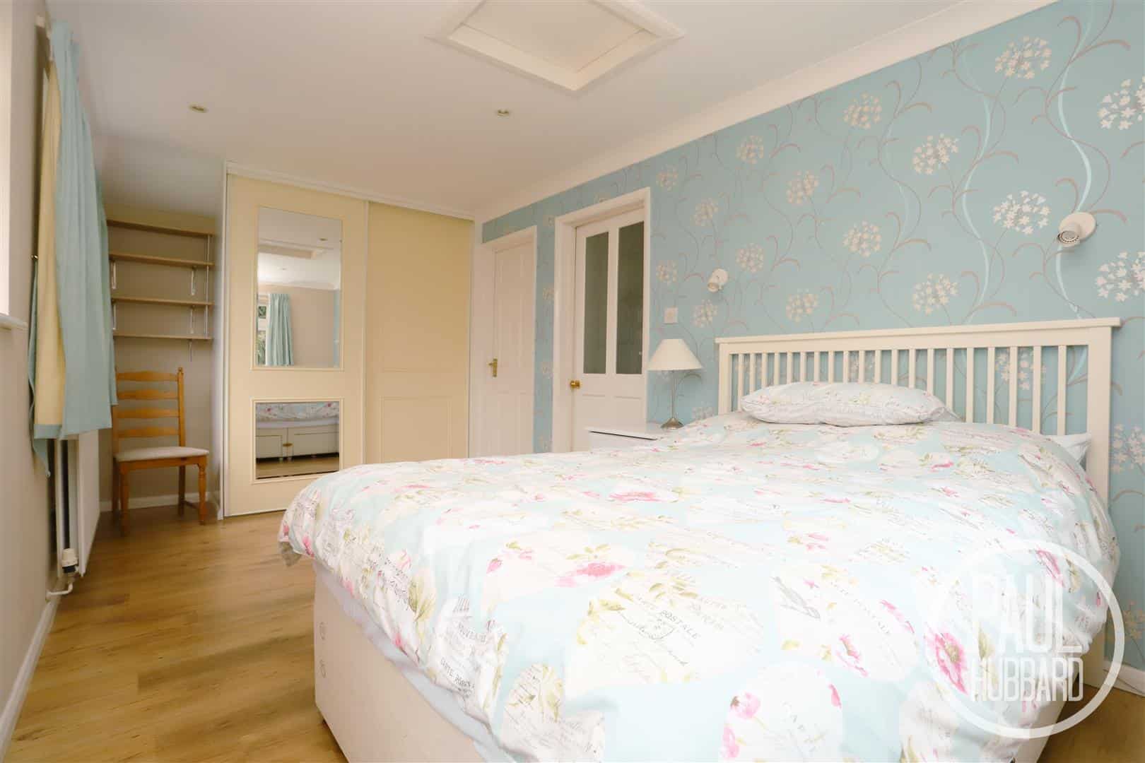 Laminate flooring, x3 dual aspect UPVC double glazed windows, loft access, spotlights, x2 radiators, fitted wardrobes with sliding doors, an internal door opening to the en-suite shower room and a UPVC door opens to the rear garden.