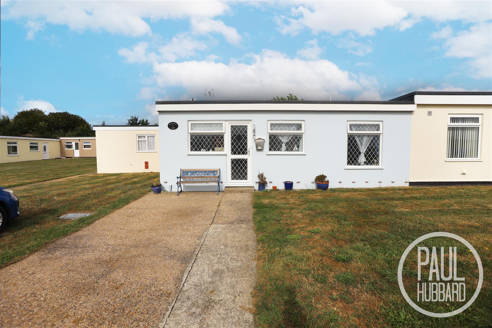 Within walking distance to Kessingland Beach. Features include a paved front area, outdoor lighting, and two allocated parking spaces.