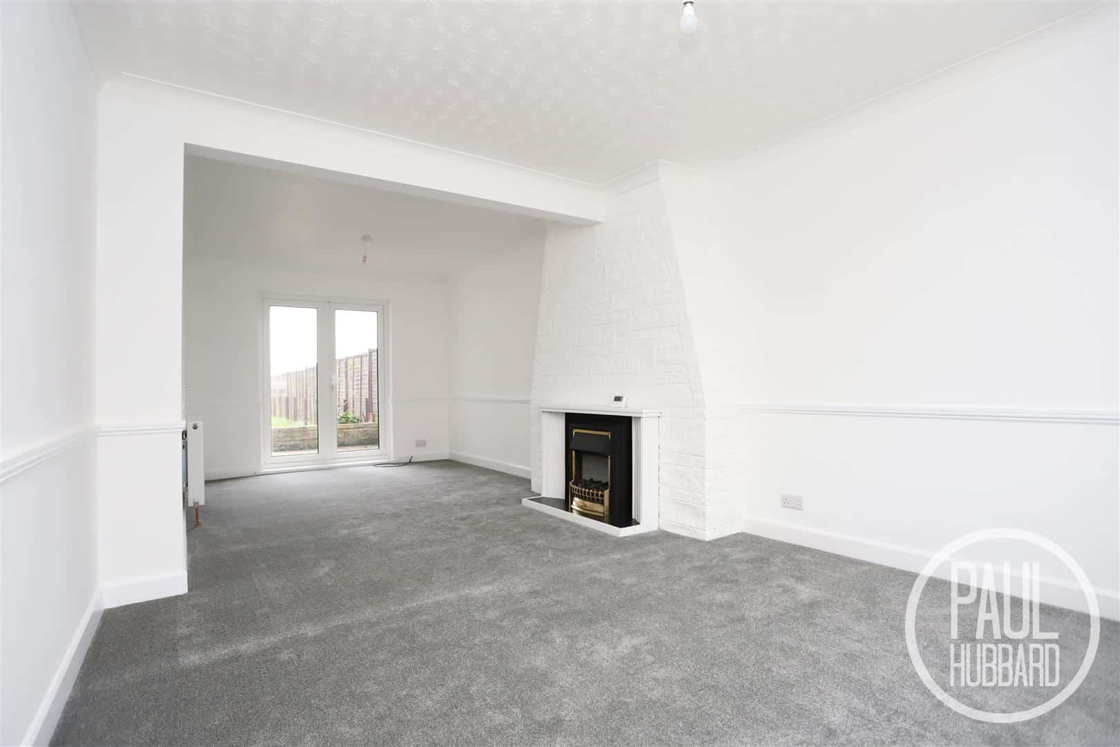 Fitted carpet, UPVC double glazed window to the front aspect, x2 radiators, fireplace a door opens into the kitchen and UPVC French doors opening to the rear garden.