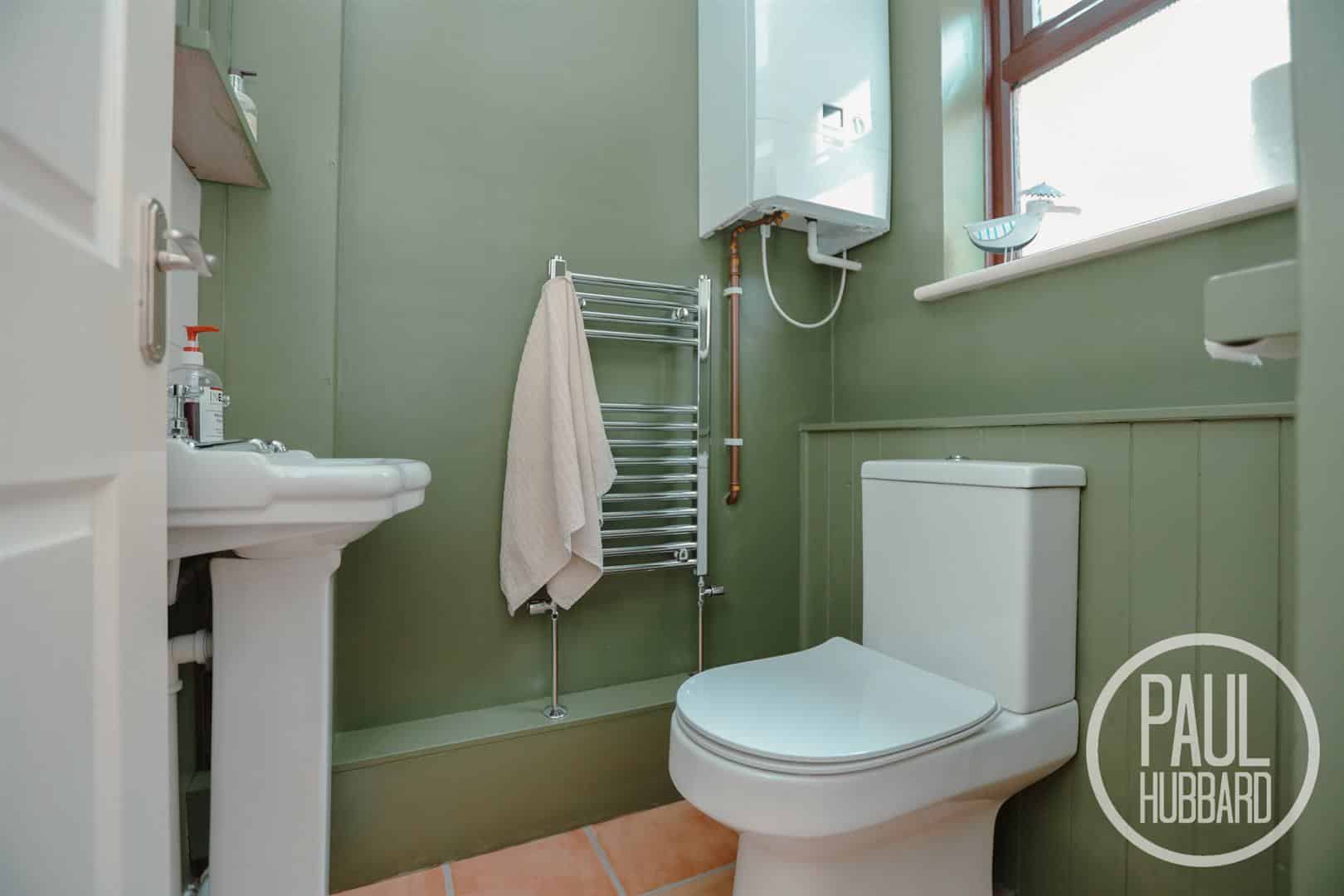 Laminate flooring throughout, UPVC double glazed window, heated towel radiator, toilet, slimline pedestal hand wash basin and a wall mounted gas boiler.