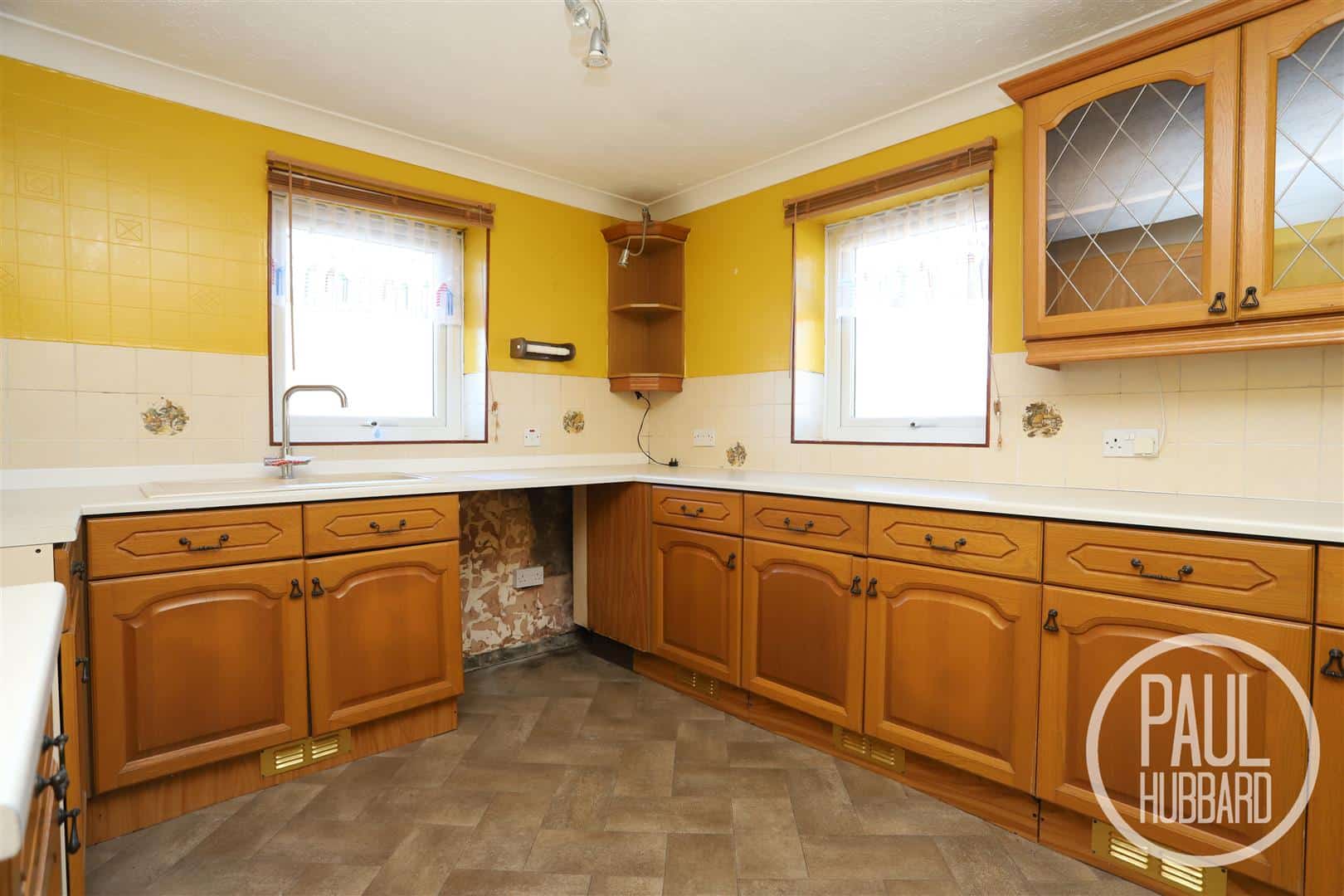 Vinyl flooring, x2 UPVC double glazed windows to the side & rear aspect, units above & below, laminate work surfaces., tile splash backs, inset composite sink & drainer with mixer tap, extractor hood and spaces for a fridge-freezer, oven & washing machine.