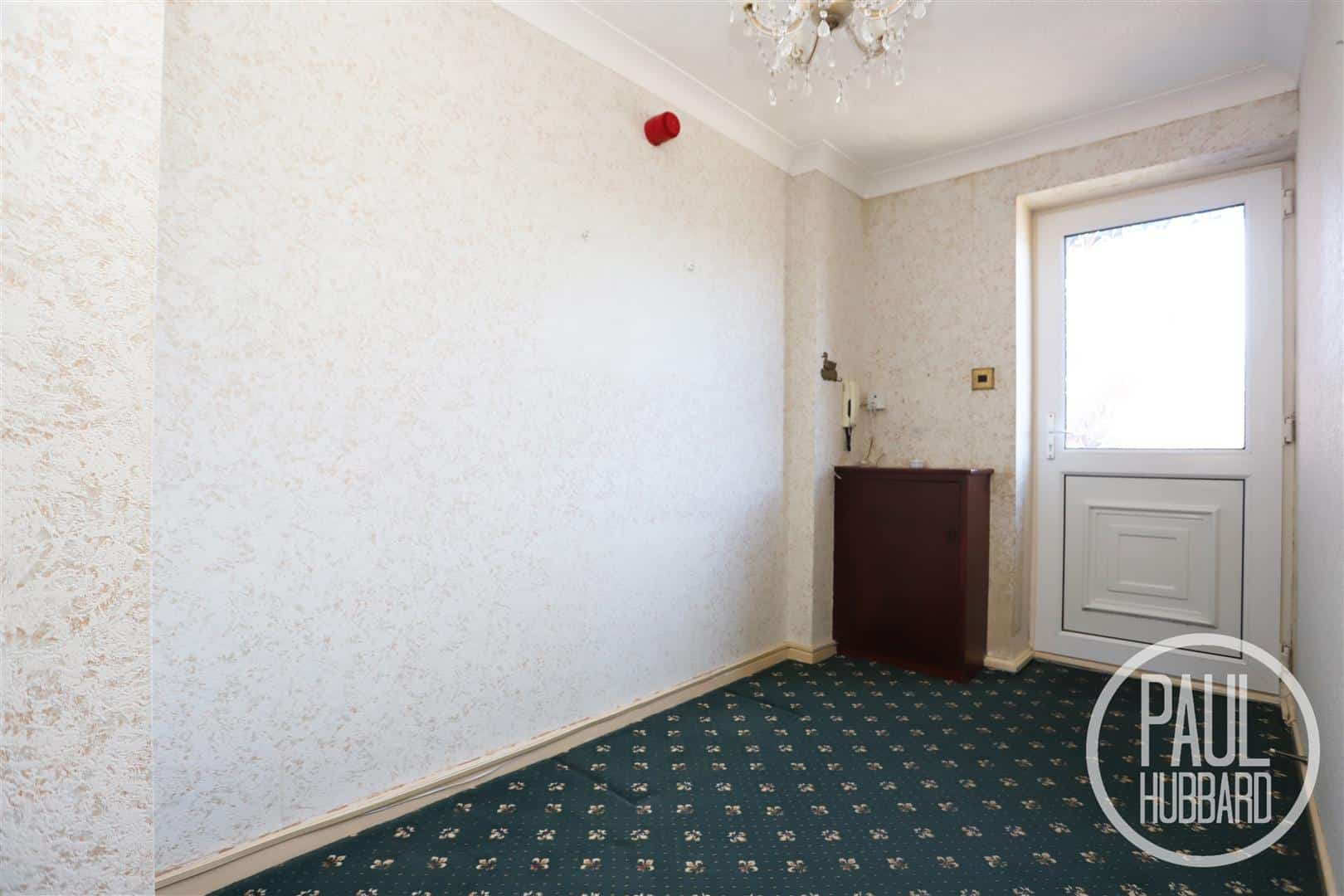 UPVC entrance door to the front aspect, fitted carpet, consumer unit, storage heater, x2 built-in storage cupboards and doors opening to the lounge/diner, bedrooms 1-2 & the bathroom.